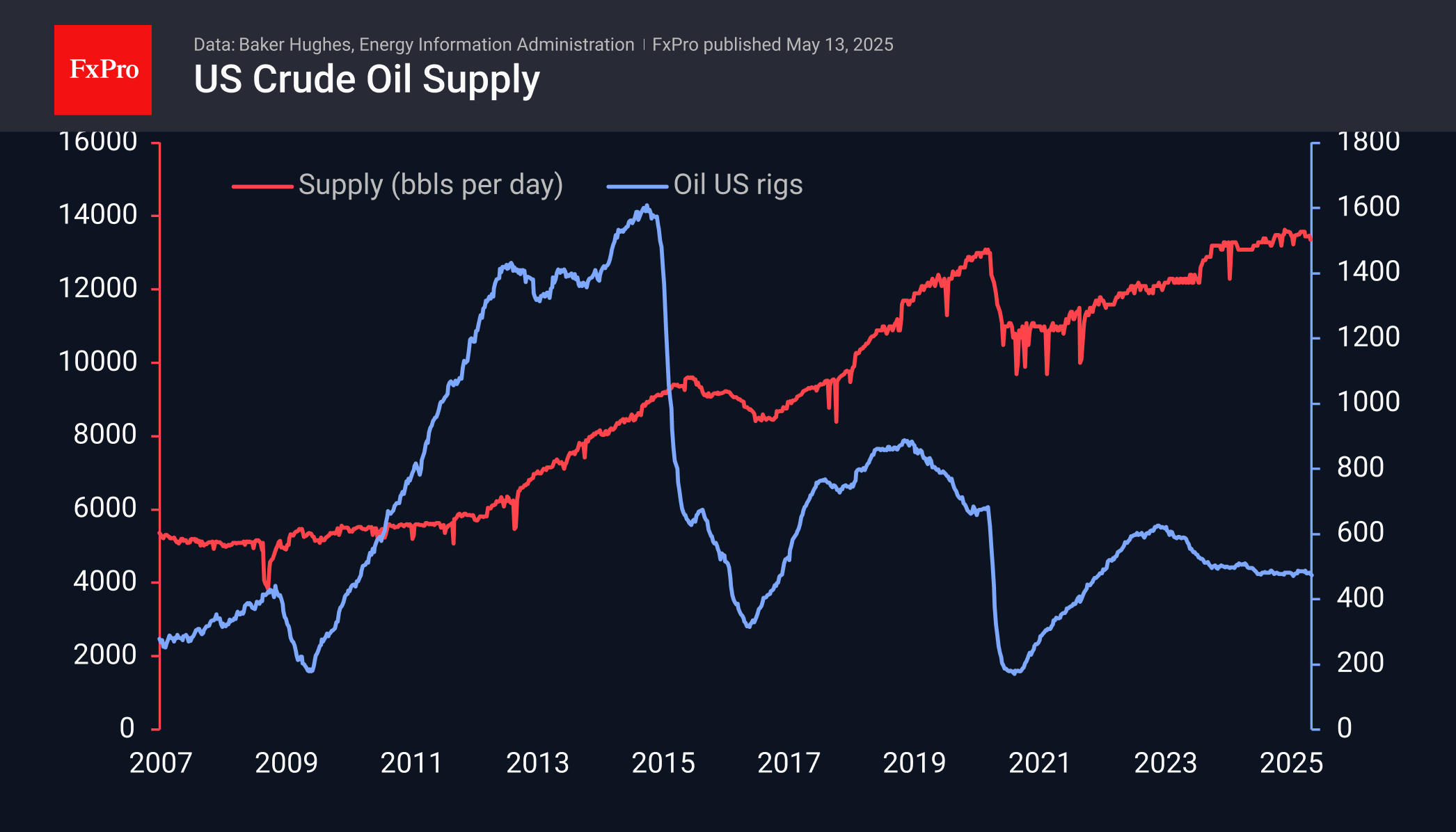 Недельные данные из США поддерживают оптимистичный подход. За последние две недели количество работающих нефтедобывающих буровых установок сократилось до 474 с 483. Это снижение обусловлено реакцией нефтедобывающих компаний на уменьшение цен на нефть до 4-летних минимумов. Об этом также свидетельствует небольшое снижение добычи до 13.37 млн баррелей в сутки против 13.46 млн баррелей ранее.