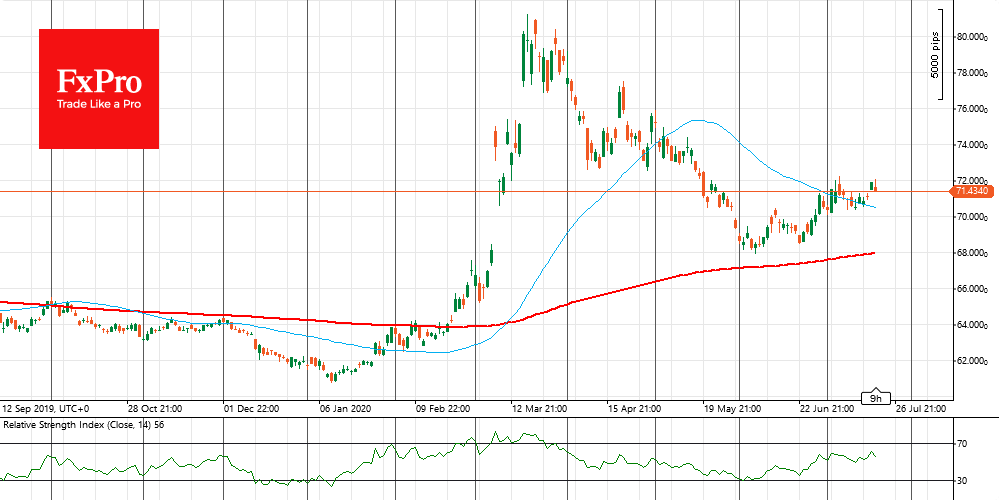 От Банка России также продолжают поступать "голубиные" сигналы. В руководстве банка делают прозрачные намеки на готовность еще раз снизить ставку 24 июля. Это снижает привлекательность активов в рублях для иностранных инвесторов, предпочитавших стратегию керри-трейда (покупки активов с более высокими процентными ставками и продажу - с низкими).