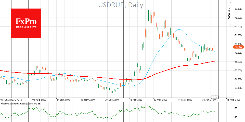 Снижение ставок и осторожные комментарии, вероятно, позволят рублю остаться в диапазоне 70-72 за доллар. Однако в случае разворота тенденции на рынках вполне стоит ожидать выхода в диапазон 72-75.