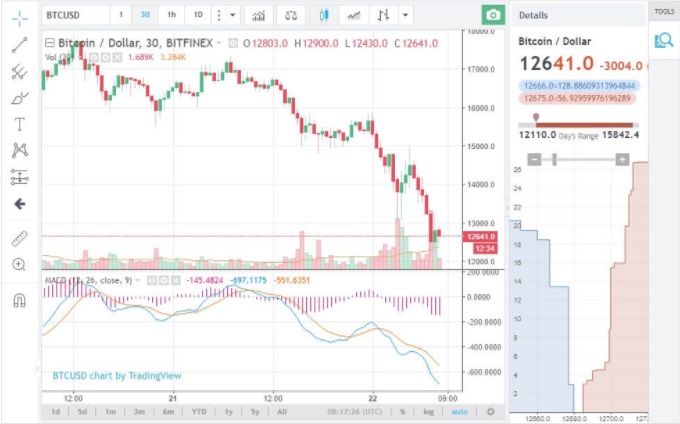 Стоимость биткоина обвалилась почти на 40% с исторического максимума в воскресенье около $20,000, упав до минимума за 15 дней около $12,000. Начало сессии в пятницу толкнуло стоимость биткоина вниз до $12,110 (Bitfinex), таким образом, он оказался около уровней 7 декабря. Данные говорят о снижении на 39% с исторического максимума на $19,891.