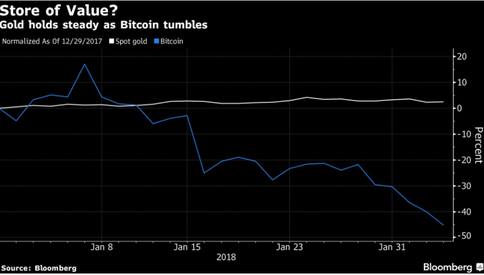 Эталонная криптовалюта обвалилась почти на 18% до $6,985 по состоянию на 13:12 в Нью-Йорке. Стоимость биткоина упала почти на 65% с рекордной отметки на уровне $19,511 в декабре. Альткоины также падали в понедельник, Ripple потерял почти 17%, Ethereum и Litecoin также снижались.