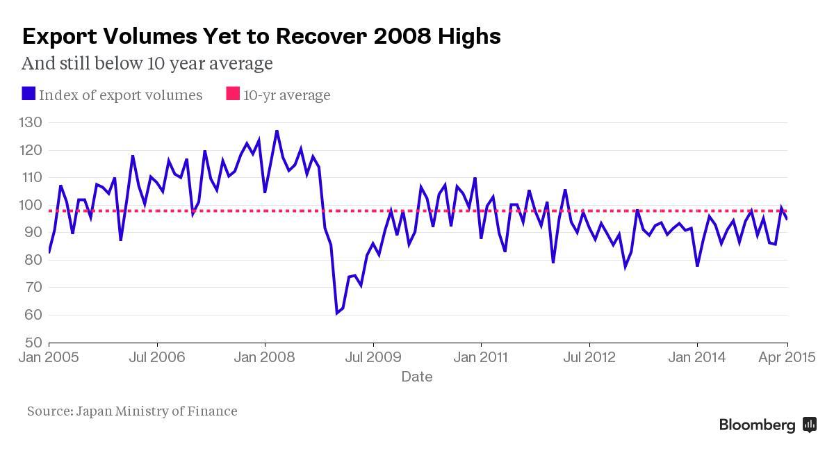 Экспорт не отреагировал на снижение иены. Многие крупные фирмы сохраняли цены такими же, просто получая более высокую прибыль. Другие выводили производство за границу в течение прошлых лет, когда иена росла.