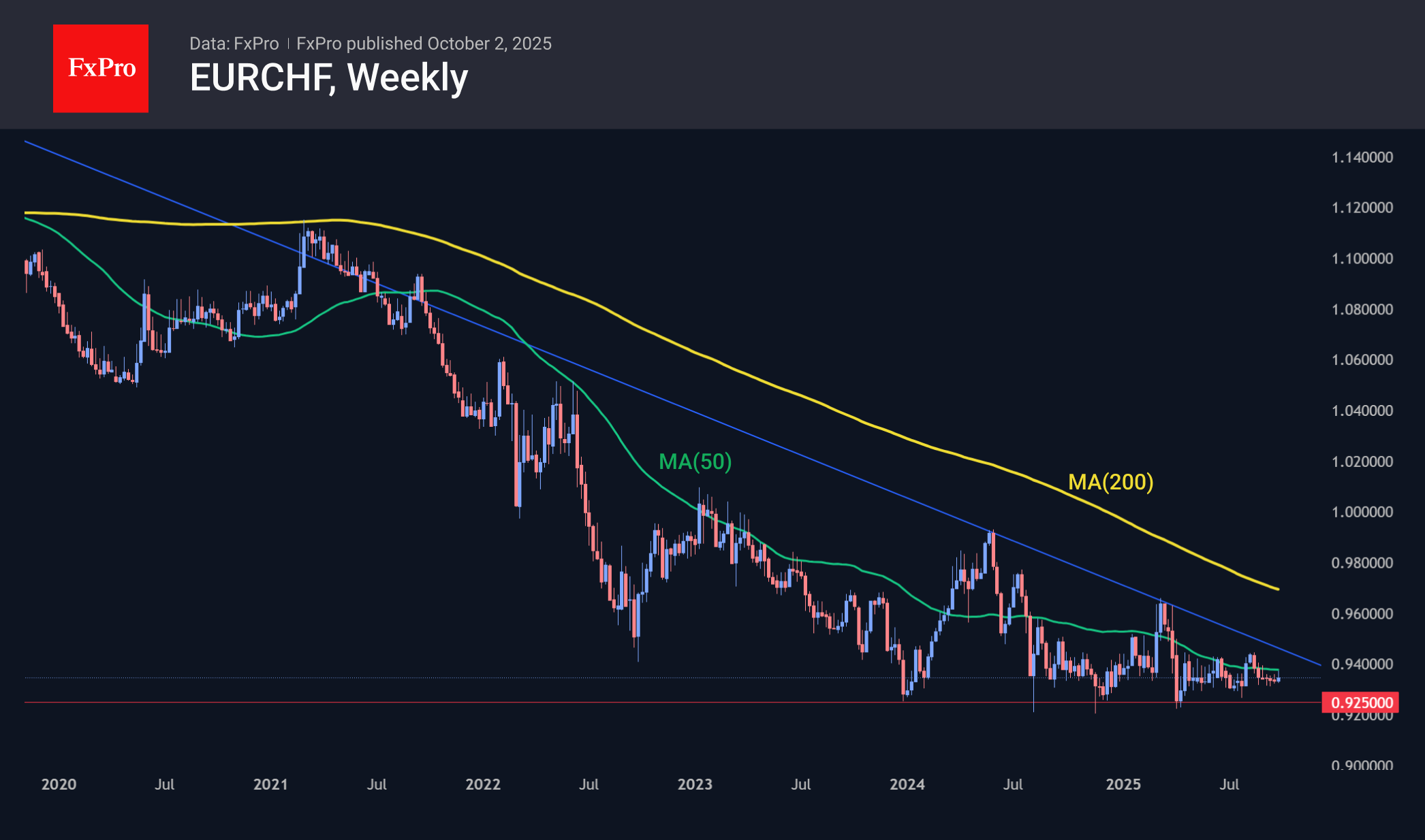 Как итог, EURCHF продолжает торговаться чуть ниже 0.9350 последние четыре недели и в диапазоне 1.5% симметрично вокруг этой отметки последние пять месяцев. Это не похоже на плавный разворот корабля. Скорее, на формирование пола в паре – нечто подобное тому, что было с 2012 по 2014 годы, но без официального подтверждения.
