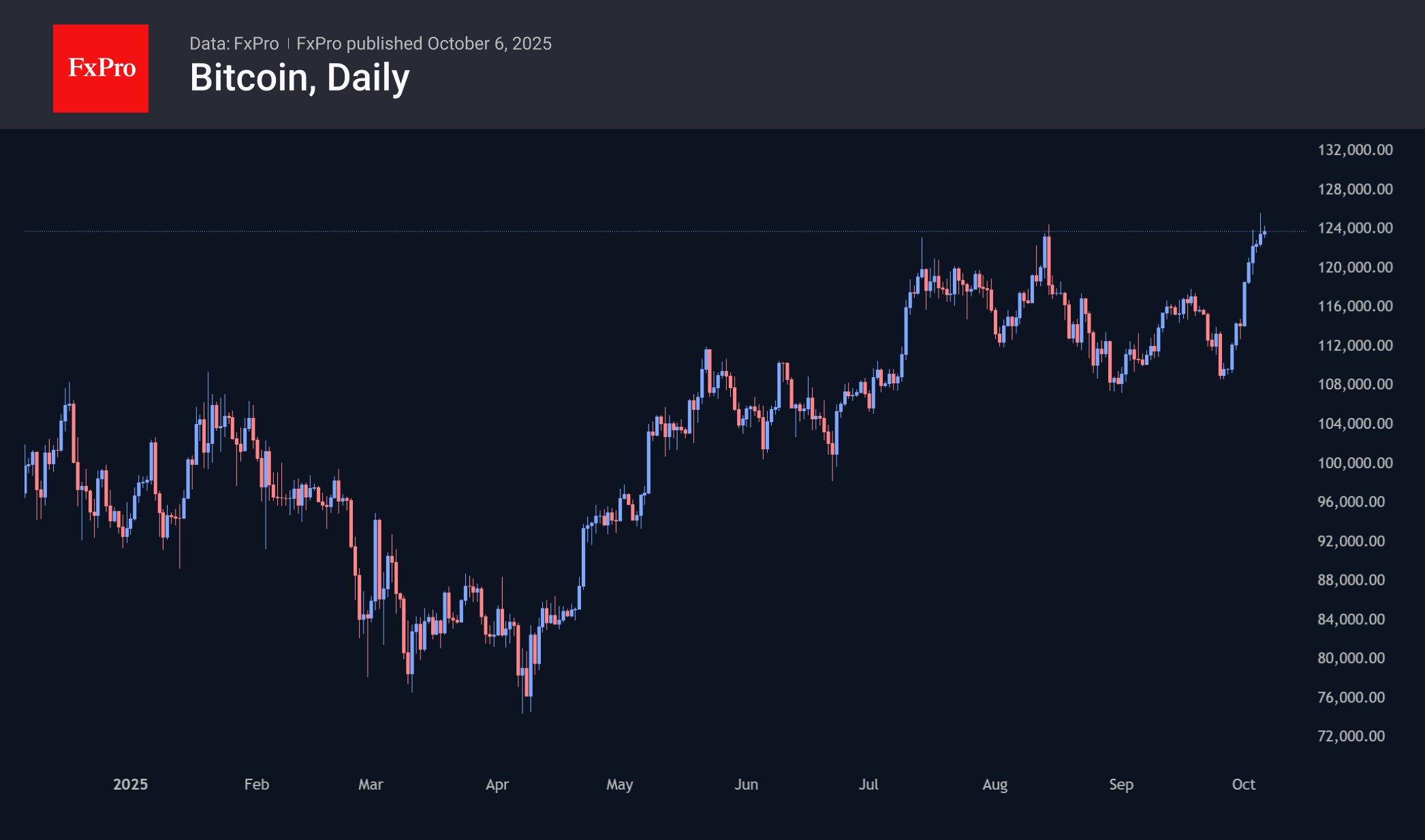 Биткоин установил новый исторический максимум на $125.6K, скорректировавшись к началу активных торгов в Европе до $123.6K. За семь дней BTCU SD прибавил свыше 15%, но нельзя не учитывать сниженную ликвидность воскресенья, что подстёгивает амплитуду движения. В июле и августе был схожий паттерн, когда за обновлением максимумов примерно на этих уровнях следовало резкое усиление продаж.