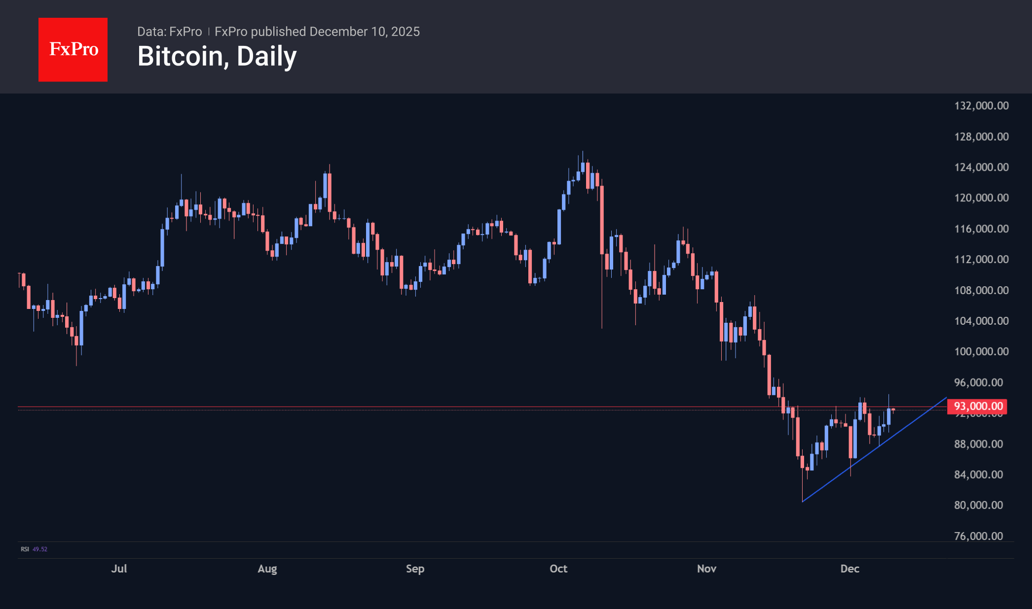 Биткоин взлетал до $94,5K в конце дня во вторник, когда за отскоком от линии поддержки краткосрочного ап-тренда последовал небольшой шорт-сквиз. Однако импульс не получил развития, и цена вернулась в область $92,6K – вблизи горизонтальной линии сопротивления последних трёх недель. Сейчас важный вопрос, сумеет ли рынок закрепиться выше, сформировав повышательный диапазон. Рынок криптовалют не решается на активные шаги перед решением ФРС по ставке.