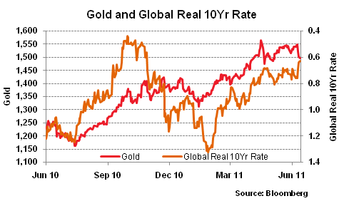 Реакция золота за последние несколько сессий вернула обратно цену его цену ниже уровня $1.500 за унцию впервые за месяц. Сложно отнести это к росту спроса на доллары, не в последнюю очередь, потому что золото падало против большинства других валют за этот период. Кроме того, это не увязывается с неприятием риска и стремлением инвесторов к «безопасным» активам. Как и всегда, не нужно далеко ходить, чтобы услышать «бычий шум»: в последнем исследовании UBS золото было выбрано в качестве главного актива на оставшуюся часть 2011 года. Тем не менее, если посмотреть на прошлые отношения, то золото может пострадать, если доллар выиграет от недавнего тренда по общему неприятию риска.