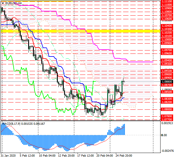 Пара EUR/USD во вторник продолжила осторожное восстановление, обновив максимумы за последние полторы недели. После тестирования линии Tenkan на 4-часовом графике пара поднялась к уровню 1.0890.