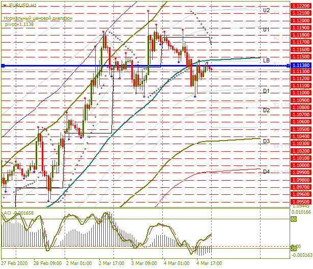 Пара EUR/USD в среду опустилась ниже линии баланса (LB).