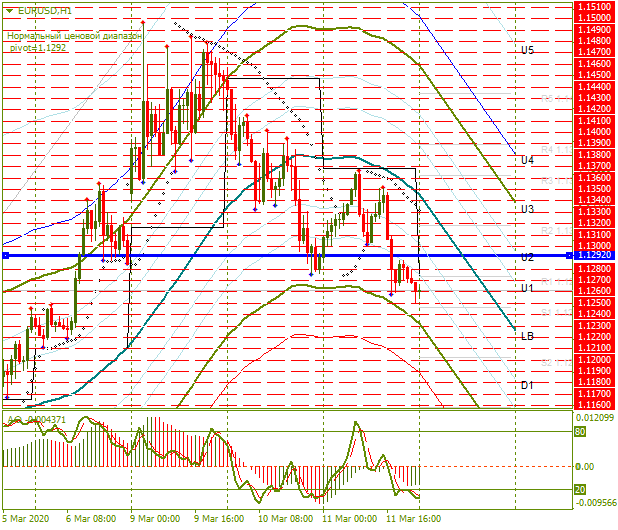 Осциллятор стохастик находится в зоне перепроданности (возможен локальный откат вверх, к уровню pivot 1.1292).