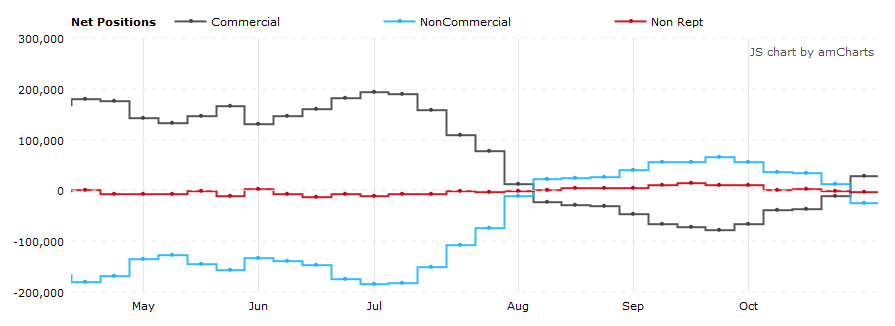 Согласно отчетам COT (Commitments of Traders), предоставляемым Комиссией по торговле товарными фьючерсами (CFTC) - за неделю, закончившуюся в прошлый вторник: