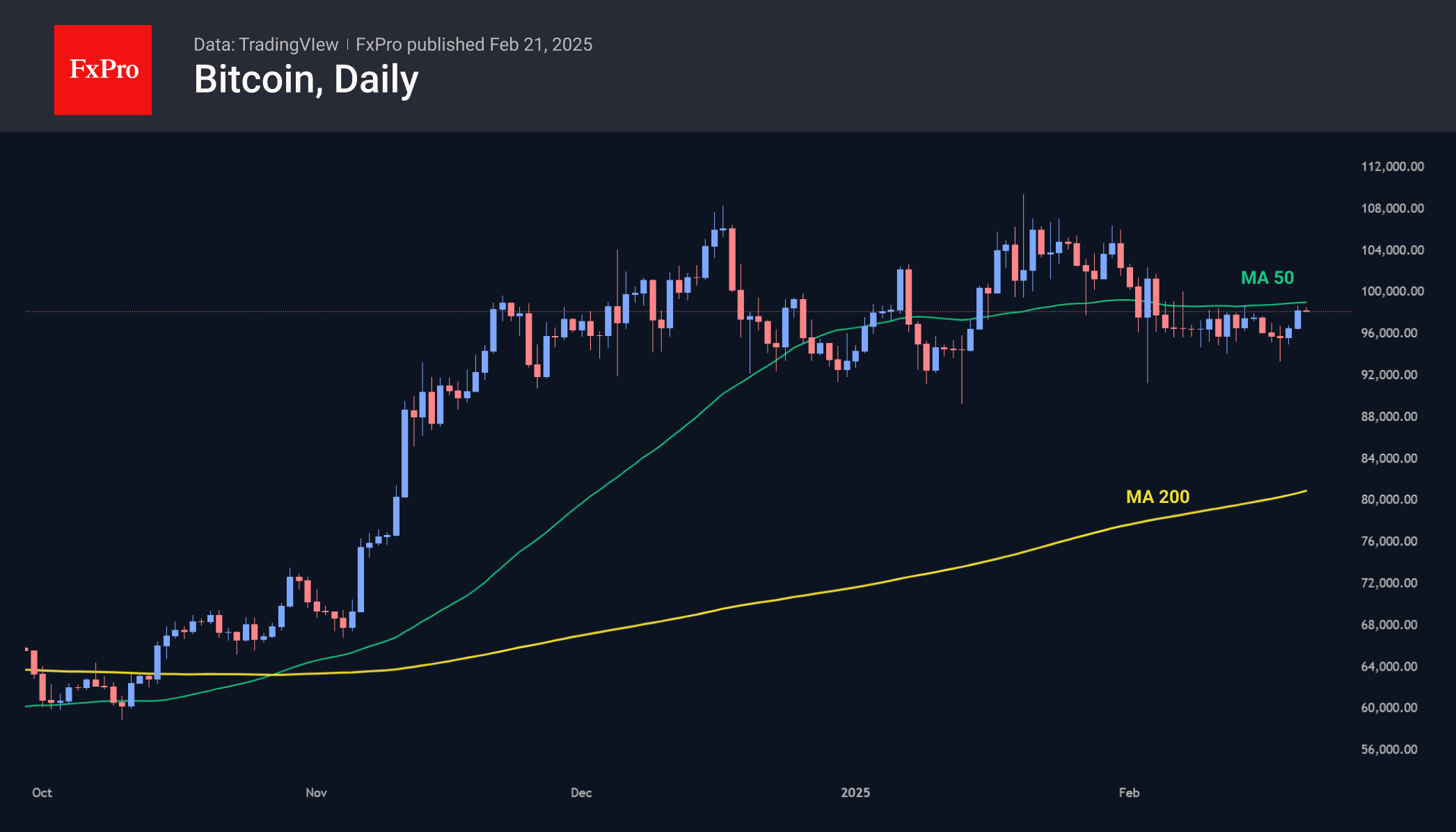 Биткоин поднялся до $98000, вновь пробуя преодолеть 50-дневную скользящую среднюю. Как и в случае с крипторынком в целом, Биткоин нашёл достаточно покупателей на спадах и проделал лёгкую часть работы с возвращением к значимым уровням сопротивления. Только уверенный шаг выше обозначит старт нового этапа ралли.