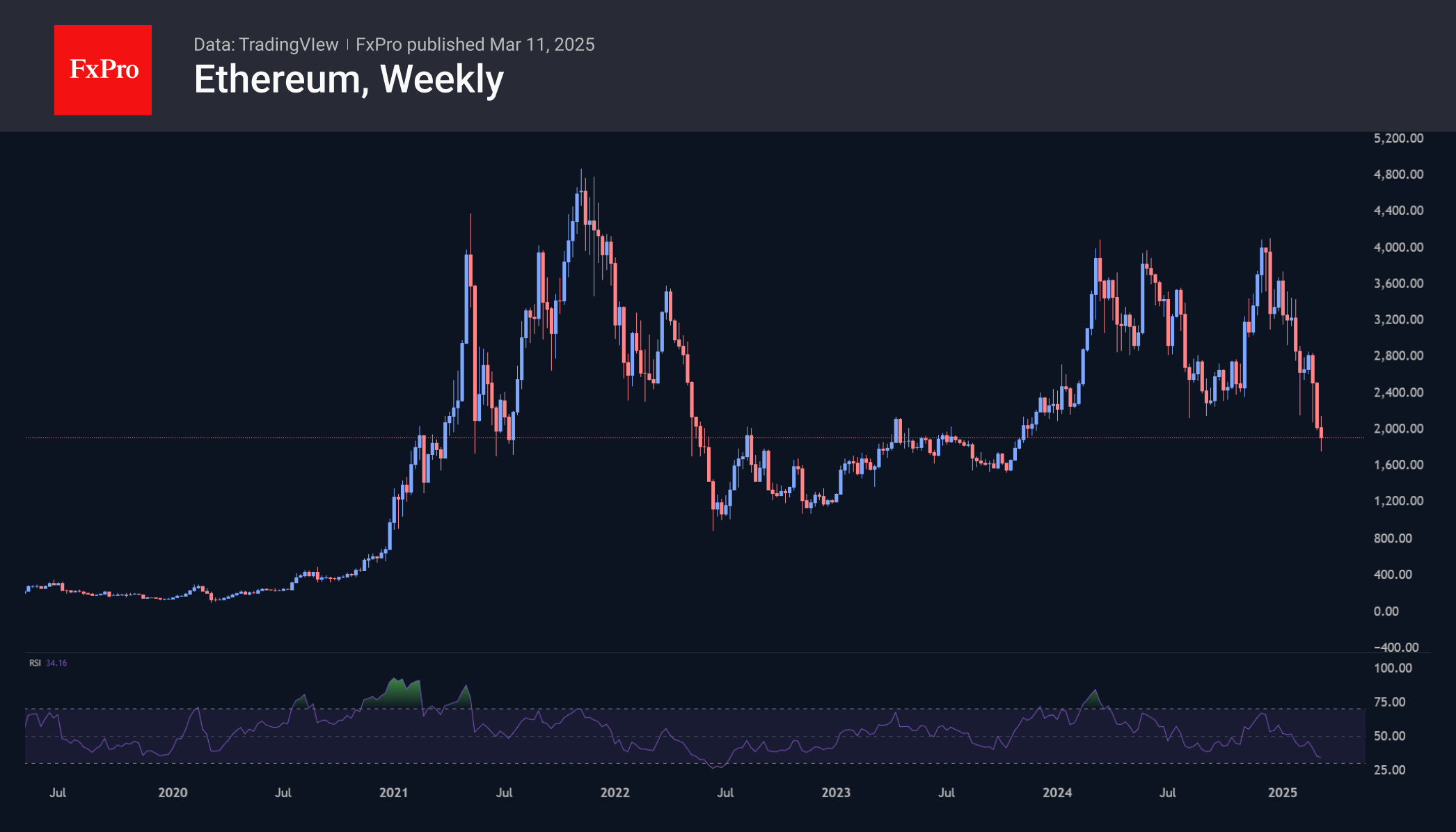 Ethereum пытается нащупать точку разворота после провала на старте дня во вторник к $1750. Это были самые низкие значения за последние 17 месяцев. На недельных таймфреймах осциллятор RSI достиг своей низшей точки с середины 2022 года – вблизи дна медвежьего рынка. Означает ли это возможность для безрассудно смелых или надлом ведущего альткоина? Узнаем уже в ближайшие дни.