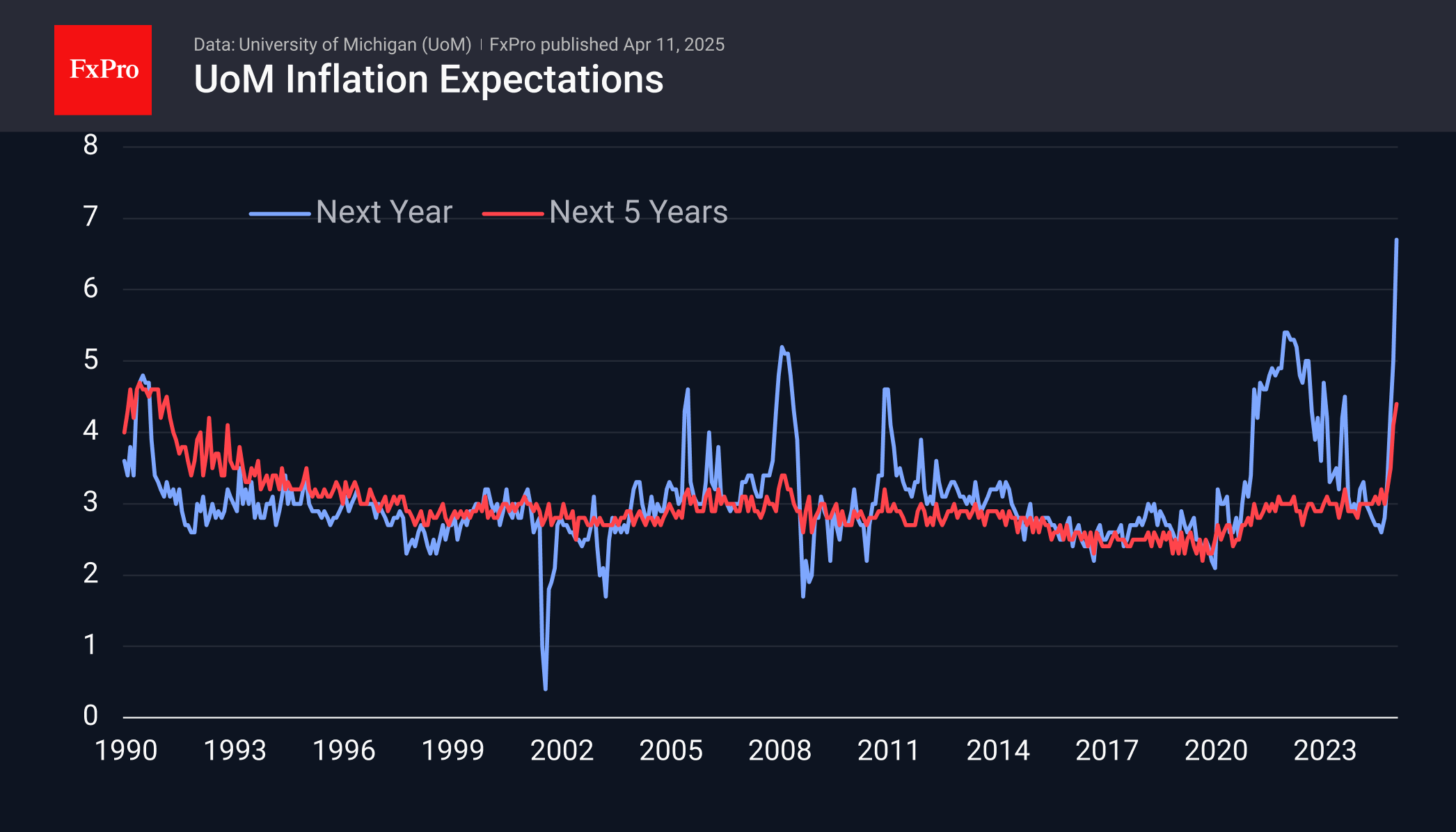 Предварительные оценки Университета Мичигана показали ужасающий взлёт инфляционных ожиданий американцев. Темпы роста цен через год оцениваются в 6.7%, а через пять лет - в 4.4%. Это неоспоримый рекорд для годового показателя и близко к пиковым значениям для 5-летних ожиданий (4.6% в 1990 году). Подкреплённое провалом индекса настроений до 50.8. Это второе худшее значение в истории с 1978 года. Индекс ожиданий также оказался в области исторических минимумов. Хуже было лишь непродолжительное время в 1980-м.