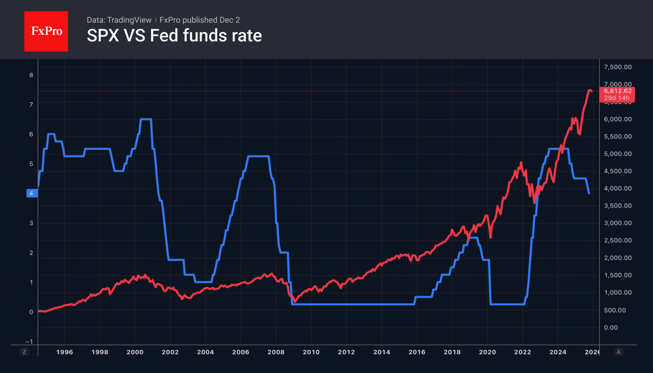 Когда рынок готовится к Рождественскому ралли и ожидает снижения ставки по федеральным фондам, «быков» сложно остановить. По мнению Bank of America, ФРС один раз ослабит денежно-кредитную политику в 2025 и ещё дважды в 2026. Причём, в основе этого прогноза лежит смена состава FOMC, а не состояние американской экономики. До сих пор её здоровье оказывало поддержку S&P 500. Состояние экономики позволяет снизить ставки, но пока не оживляет страхи по поводу рецессии.