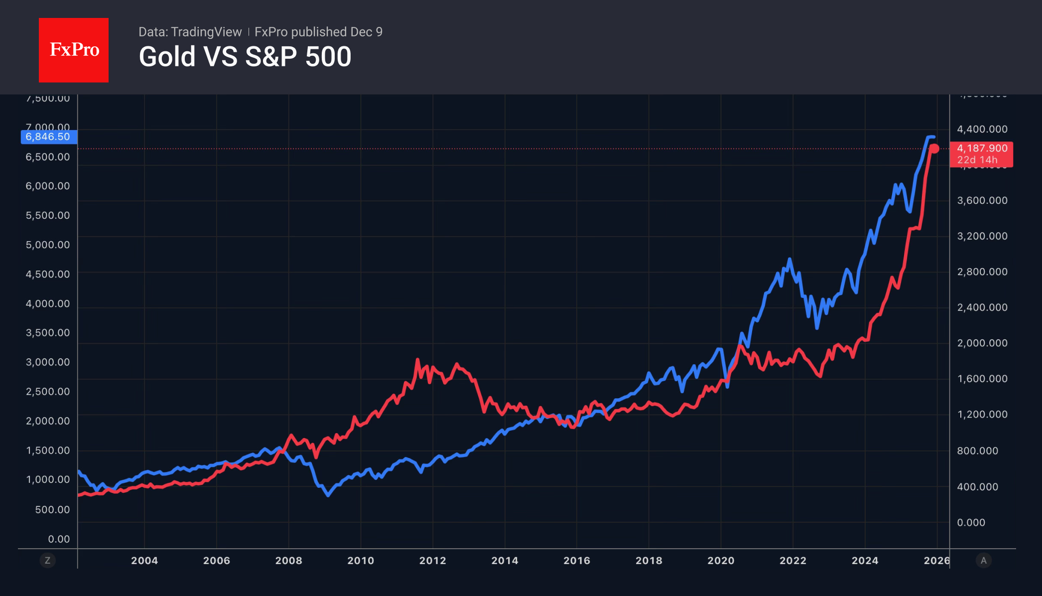 Поддержку золоту оказывает высокий спрос со стороны поклонников ETF, в первую очередь, в Китае и Индии. По данным Всемирного золотого совета, запасы ориентированных на драгметалл специализированных биржевых фондов достигли отметки 3932 т в конце ноября, прибавляя каждый месяц кроме мая и суммарно нарастив запасы на более чем 700 т за 2025. Это рекорд как в стоимостном, так и в физическом выражении.