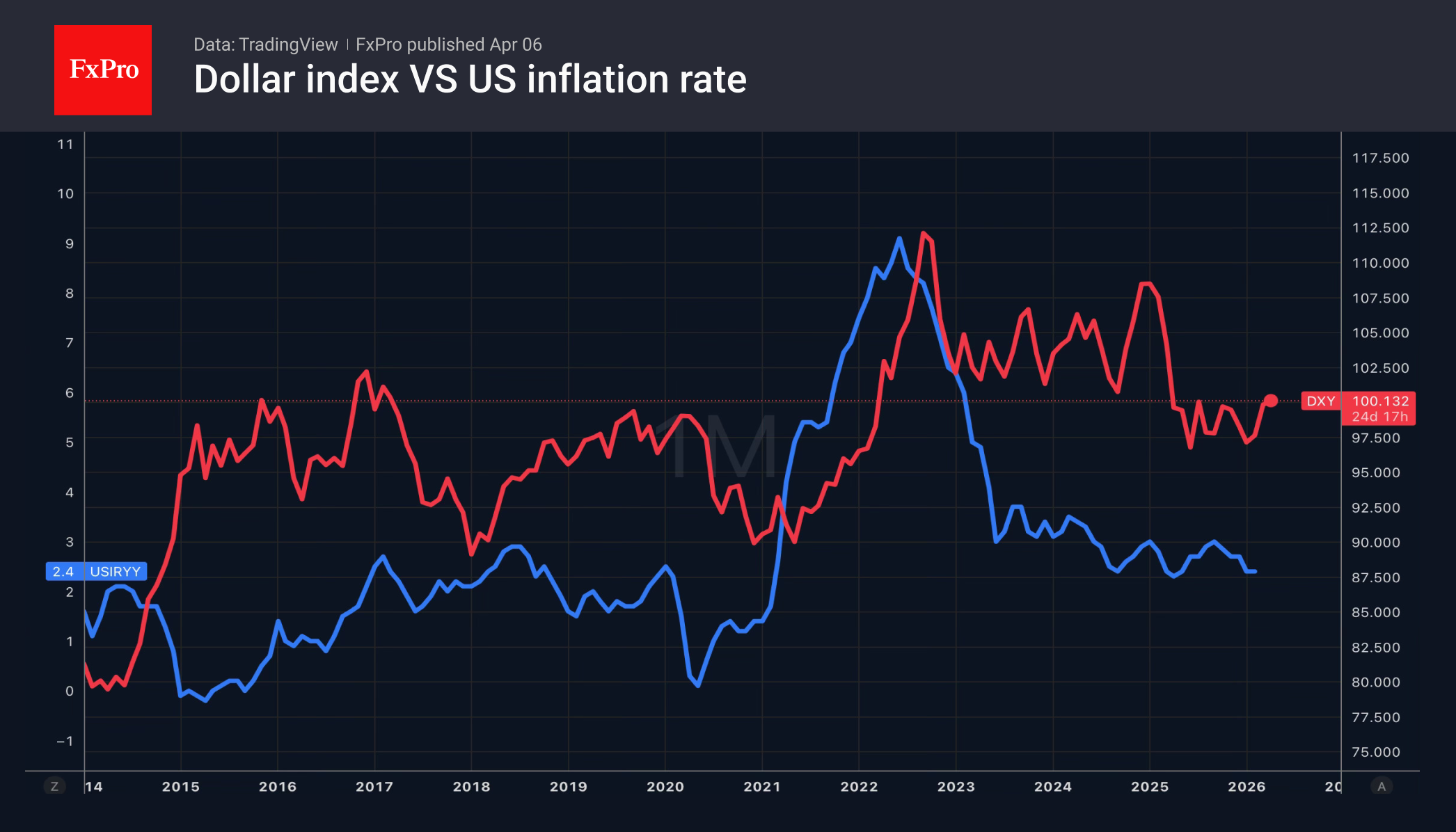 В Европе прямо противоположная картина. Ослабление евро усиливает инфляционные риски. В 2022 году ЕЦБ медлил с повышением ставок, что обернулось ростом CPI до двузначных величин. Неудивительно, что сейчас Европейский центробанк выступает в роли ястреба.
