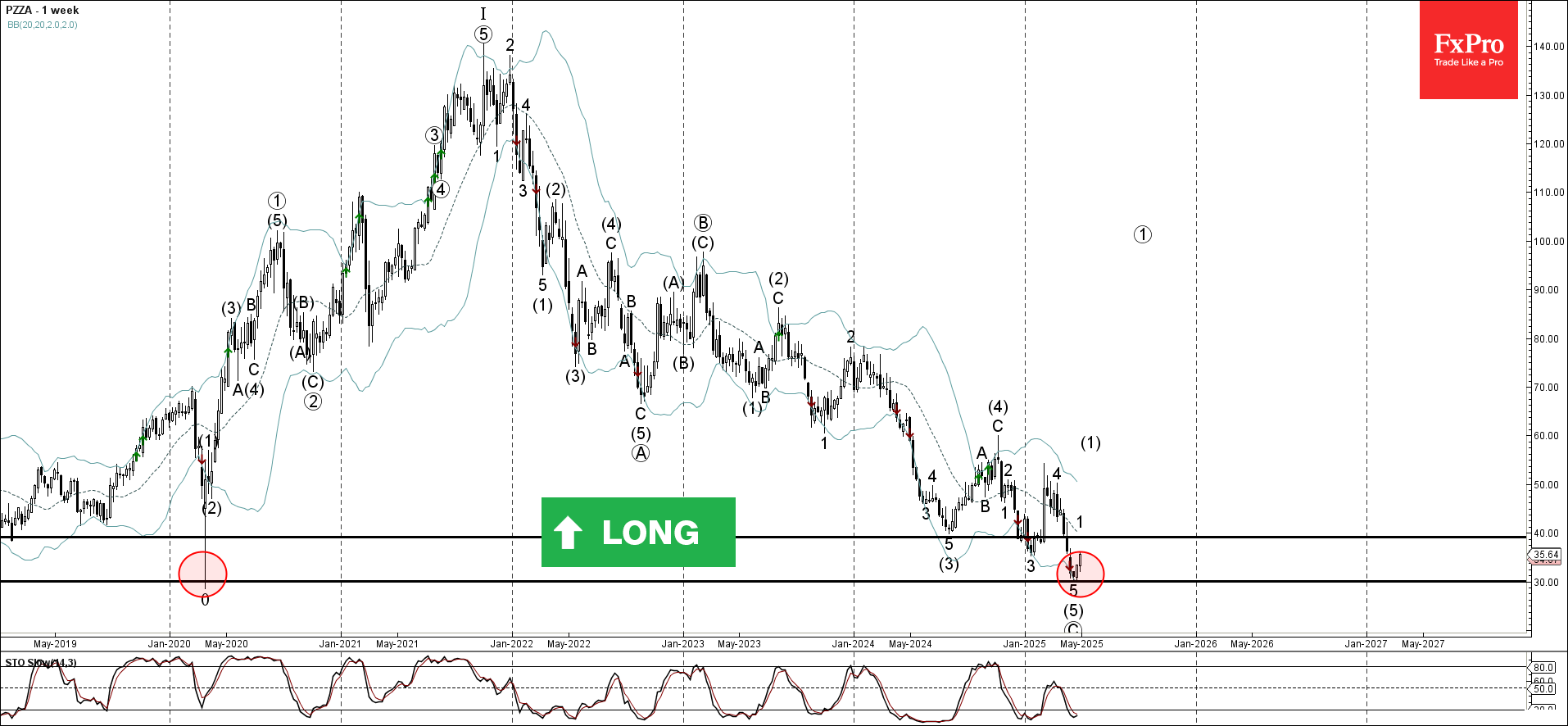 Учитывая силу уровня поддержки 30,00 и перепроданный недельный стохастик, можно ожидать, что PZZA продолжит рост до следующего круглого уровня сопротивления 40,00.