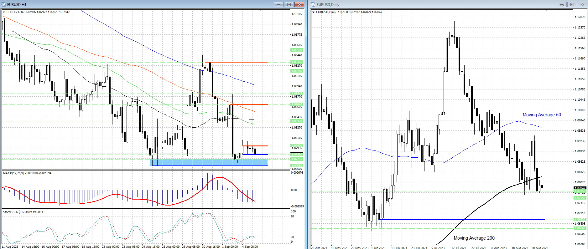 - на уровне 1.0797 образовалось сильное сопротивление для евро (EUR),