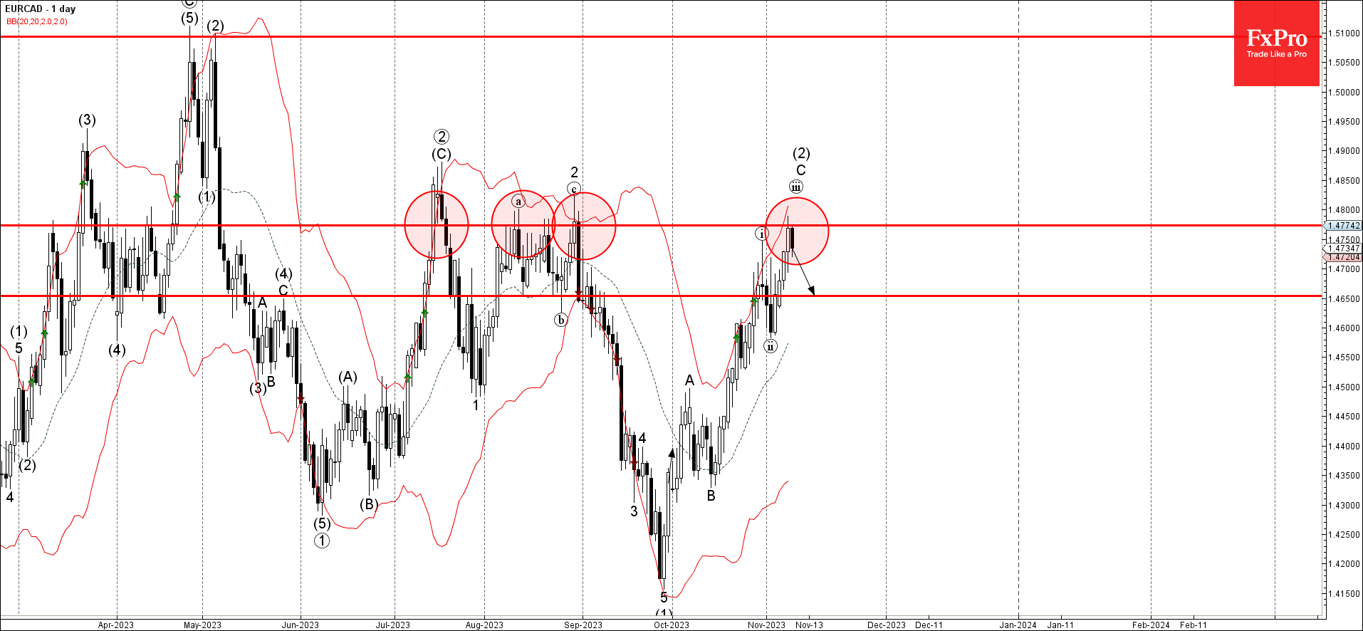 Волновой анализ EURCAD 9 ноября 2023 г.