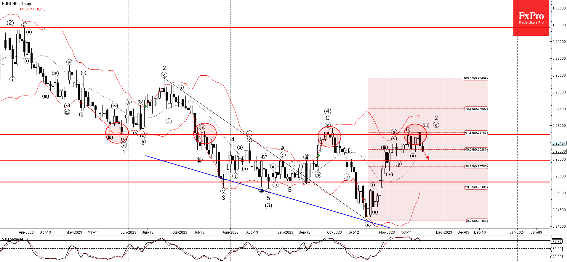 Волновой анализ EURCHF 22 ноября 2023 г.