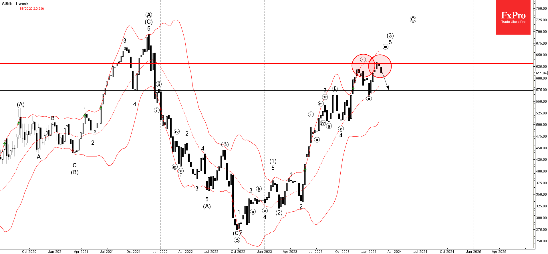 - Adobe развернулась от ключевого уровня сопротивления 633,00.
