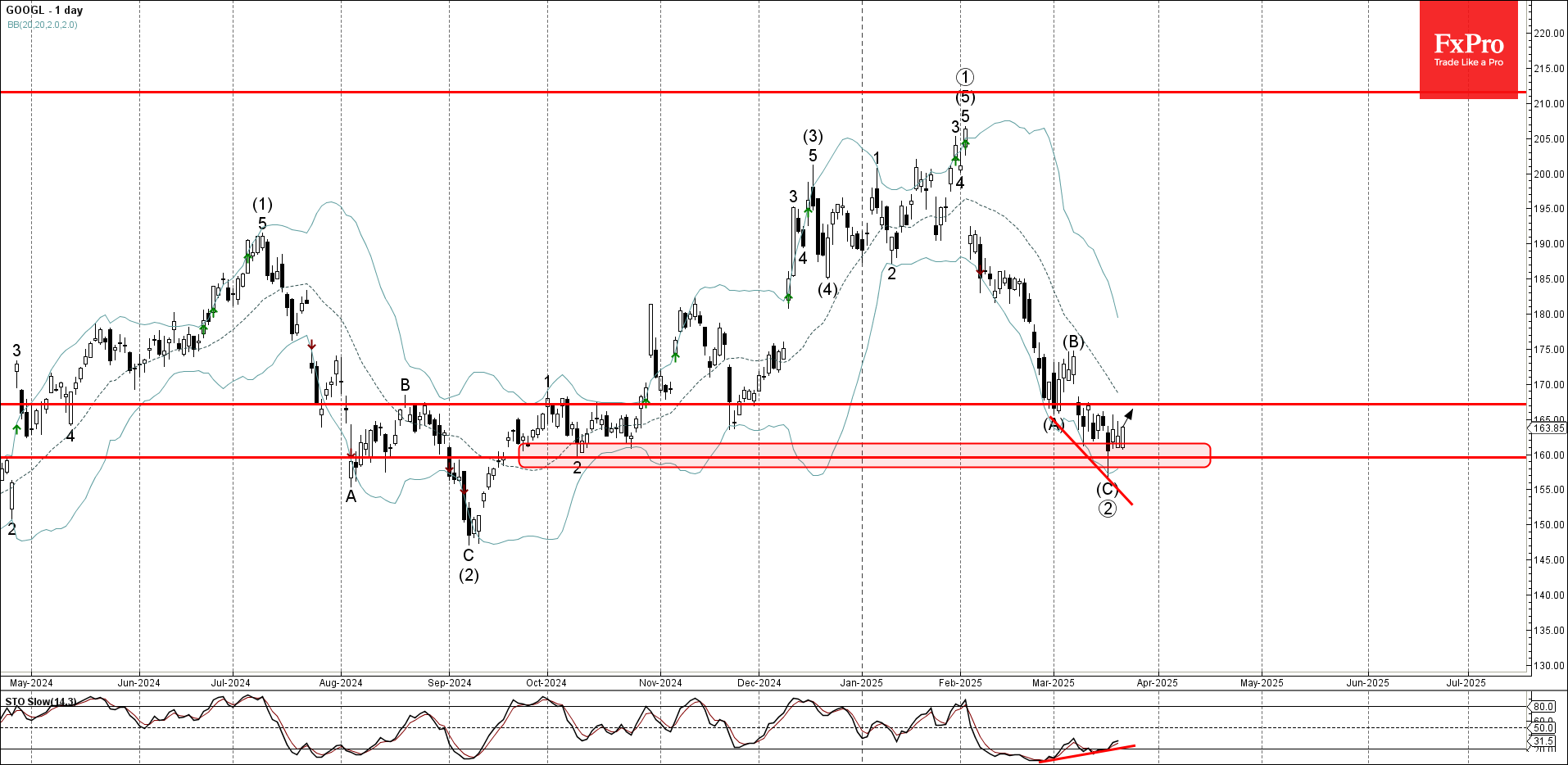 Учитывая силу уровня поддержки 160,00 и бычье расхождение на дневном стохастике, можно ожидать, что Google поднимется до следующего уровня сопротивления 167,00.