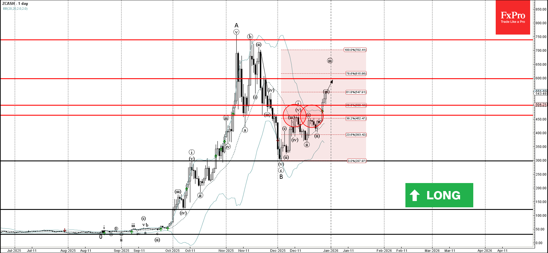 Волновой анализ Zcash – 29 декабря 2025 г.