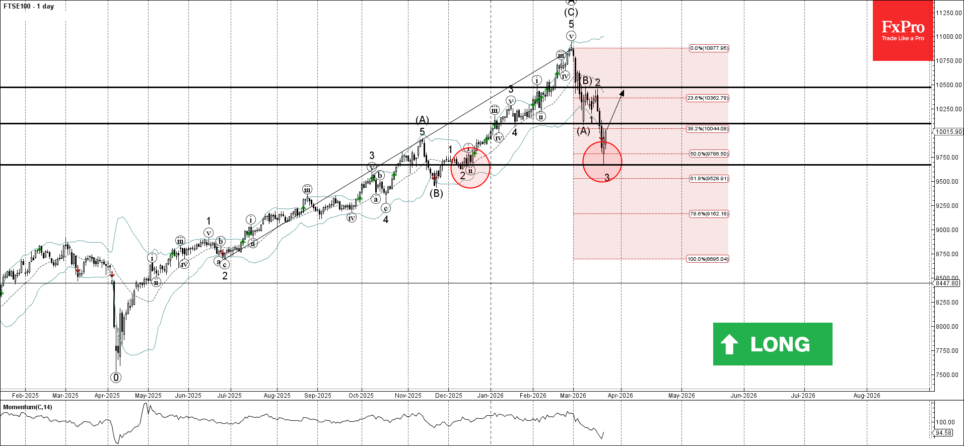 Волновой анализ FTSE 100 – 23 марта 2026 г.
