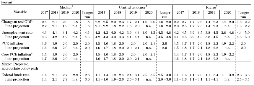 ФРС обещает приступить к сокращению баланса активов с октября и сохранил неизменной ставку. Однако мощную волну роста доллара сразу после публикации вызвали прогнозы комитета. В них комитет настроен провести третье повышение в этом году и сохранила ожидания на ещё три повышения в следующем году.