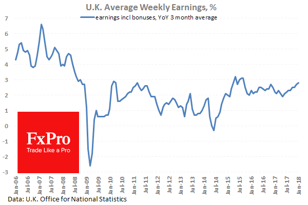 В 11:30 МСК публикуется изменение уровня среднего заработка в Британии исключая премии (3 м / г/г) (фев), ожидается 2.8% против 2.6% ранее. Уровень изменения числа заявок на пособия по безработице (мар) ожидается на 5.0К против прошлого значения на 9.2К. Уровень безработицы от ILO (3м) (фев) ожидается неизменным на уровне 4.3%. Рост оплаты труда, как ожидается, продолжит наращиваться после стабилизации на 2.5% и прибавки в прошлом месяце. Уровень безработицы находится на минимумах за десятилетия, что обычно приводит к росту оплаты труда из-за конкуренции среди работодателей.