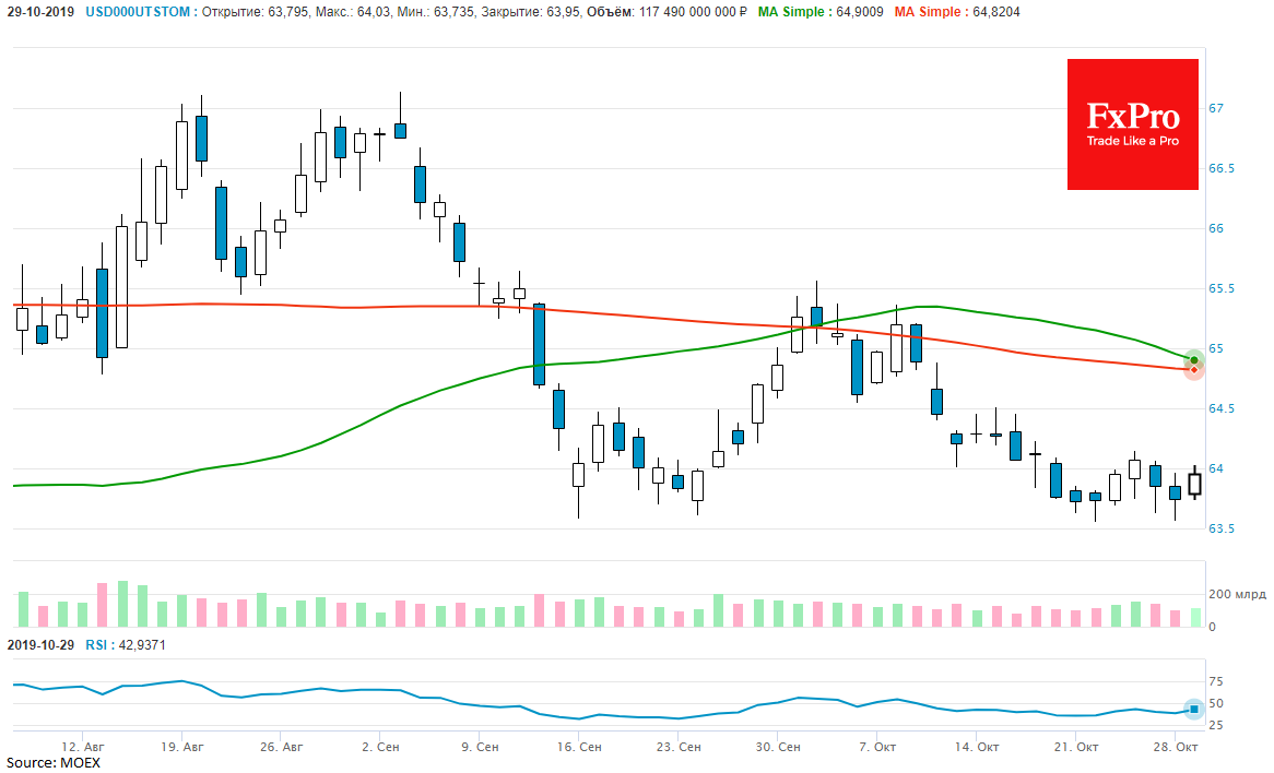 В целом, это соответствует весьма продолжительной паузе, хотя еще несколько недель назад участники делали ставки на четвертое по счету смягчение политики ФРС в декабре. Если в Федрезерве подтвердят, что намерены взять как минимум паузу, а то вовсе закончить смягчения на этом, то доллар может получить внушительный рост спроса. Сигнал об окончании цикла смягчения монетарной политики может также стать громом среди ясного неба для рынков, штурмующих максимумы один за другим как раз в расчете на мягкость монетарной политики центральных банков по всему миру. В этих условиях USDRUB может оказаться под ударом, и в течение нескольких дней превысить отметку 65, направившись в область 67 до конца ноября.