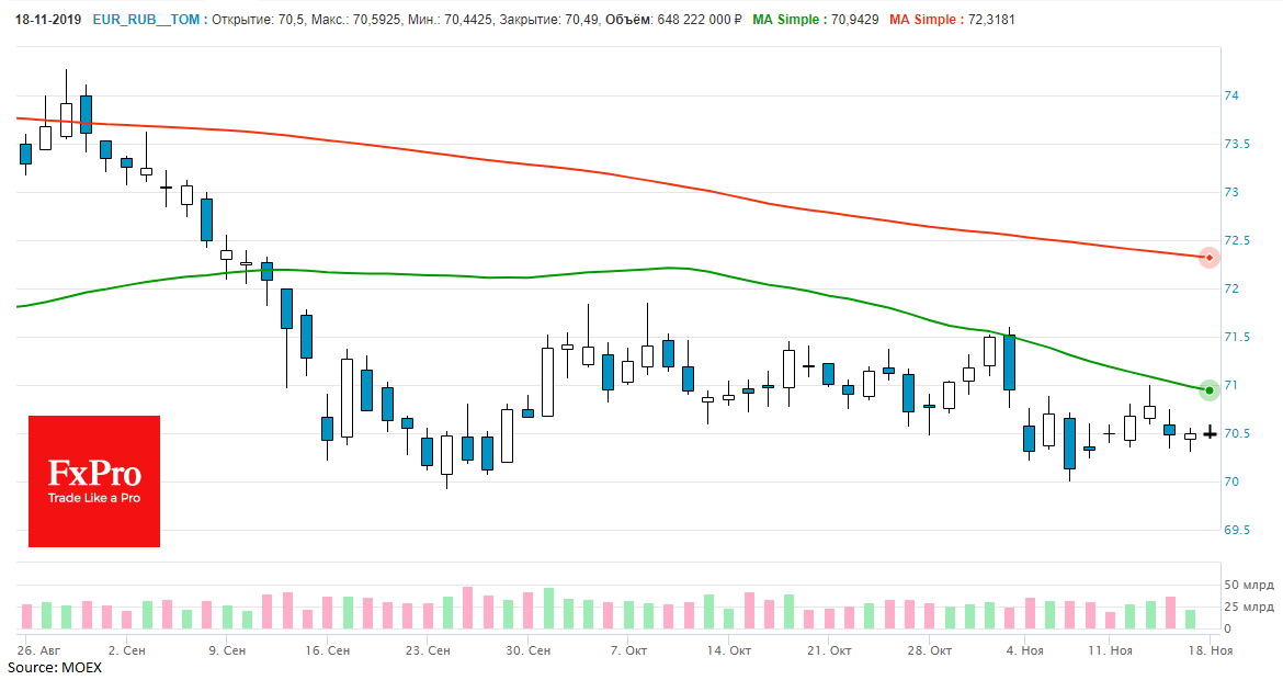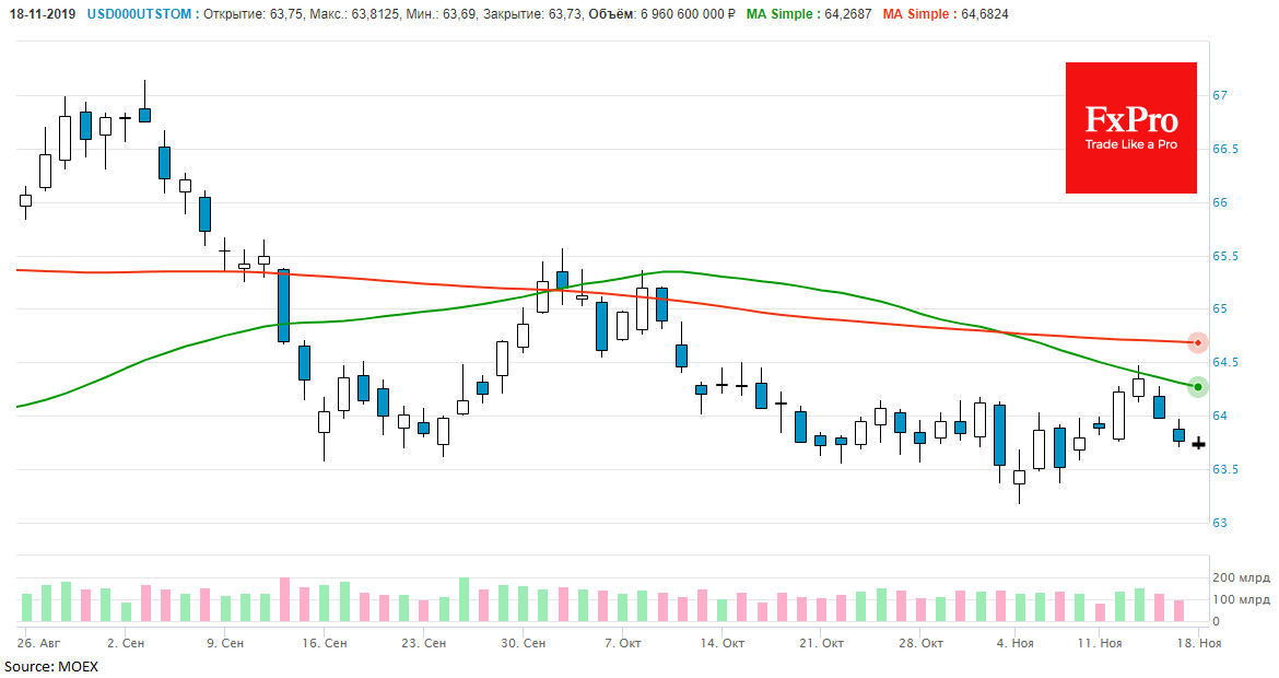 USDRUB вновь натолкнулась на сопротивление у 64.50, в немалой степени за счет глобального ослабления доллара. Закончив неделю у 63.88, американец способен вновь попробовать на прочность отметку 63.50 на старте будущей недели. Тем не менее, американские рынки, кажется, прыгнули выше головы в предыдущие дни, рискуя запустить полномасштабную рыночную коррекцию и отправить USDRUB вблизи 64.50 на конец будущей недели, пусть это и выглядит весьма агрессивным сценарием.