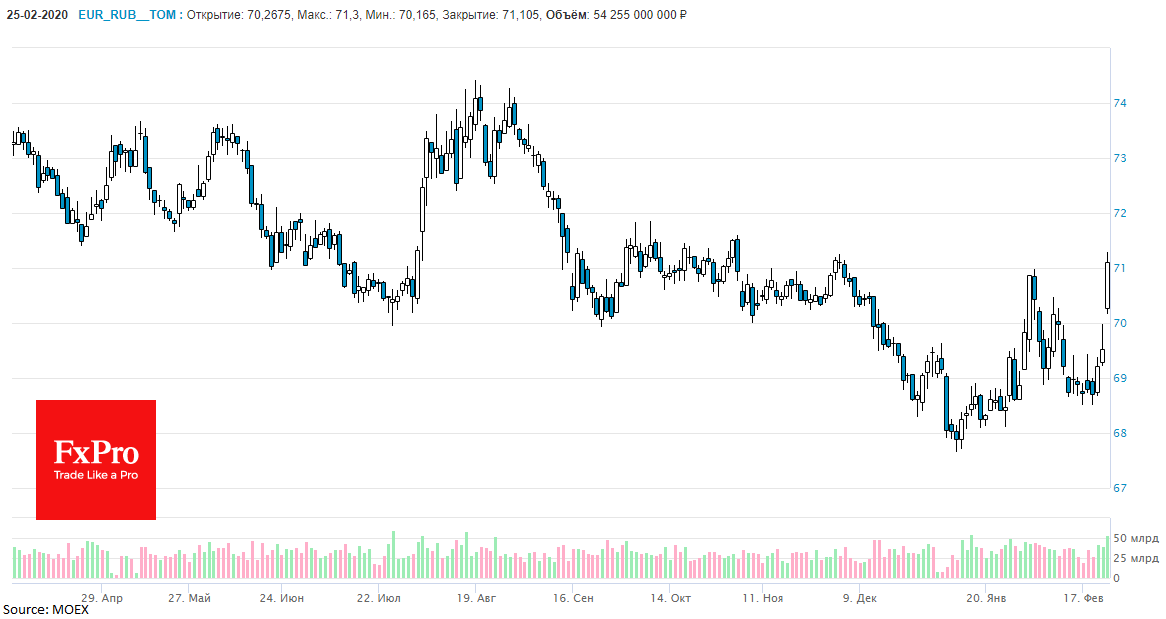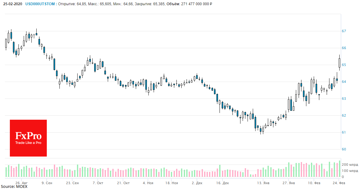 Российская валюта подверглась резкой распродаже на старте торгов во вторник, отыгрывая близкие к паническим настроения на финансовых рынках. Попытки курса стабилизироваться не увенчались успехом: по итогам дня американские индексы просели еще на 3% на страхах перед пандемией коронавируса Covid-19.