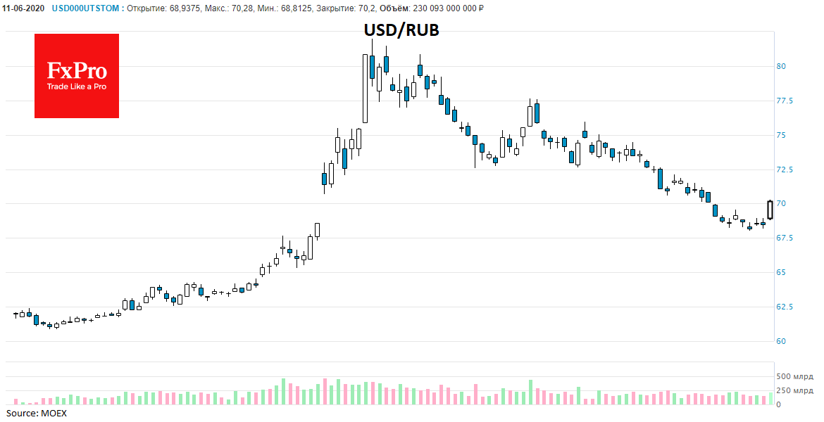 Технически, российский рубль забуксовал с дальнейшим ростом после того, как вернулся к уровням, где был 6-го марта – тоже перед длинными выходными. Для многих участников приближение к 67.50 послужило сигналом для фиксации прибыли от восстановительного ралли рубля.