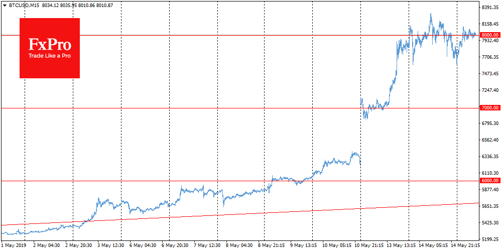 Вполне вероятно, что рынок только начал разогреваться, и возвращение Биткоина и рынка криптовалют в фокус розничных инвесторов вполне способно положить начало намного более продолжительному ралли, чем то, что мы видели до сих пор. А тот факт, что «остановки» происходят на круглых уровнях (6000, 7000, 8000) говорит о технической подоплеке движения, не отражая смены настроений.