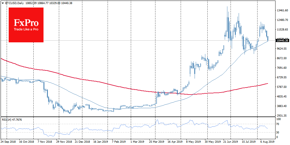 За сутки BTC упал почти на $800 или на 7% и торгуется утром в среду за $10,600. Что не растет - то падает. Очень актуальная фраза в отношении биткоина в данный момент. Неспособность развить рост вылилась в падение биткоина.