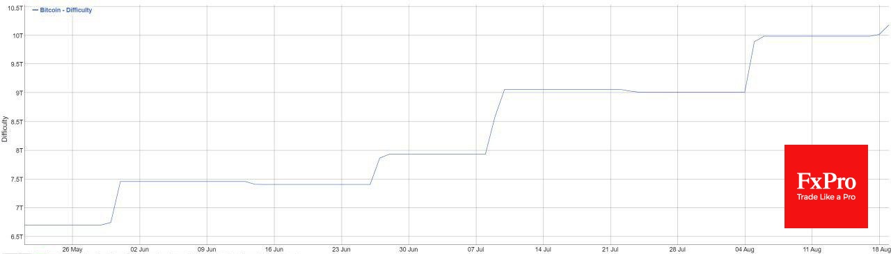 Сложность майнинга биткоина сейчас на историческом максимуме 10.1835T. За последние 3 месяца она выросла почти на 52%. Для сравнения, на момент достижения исторических максимумов на $20,000 в декабре 2017 года сложность майнинга была в пять раз ниже. Тогда низкая масштабируемость привела к огромным логам неподтвержденных транзакций. Сейчас рынок готов предложить существенно больший запас хеширующей мощности.