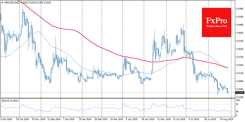 Если в отношении биткоина речь идет о коррекции, то на рынке альткоинов “кровавая баня”. Лимит доверия к альтернативным криптовалютам уже в течение некоторого времени явно исчерпан, тогда как в моменты коррекций альткоины распродают еще более ожесточенно. XRP торгуется за минимальные 25 центов. Переживший недавно халвинг Litecoin (LTC) теряет за последние сутки 10% и торгуется около за $65 (-27% за месяц). Ведущий альткоин Ethereum (ETH) теряет более 9% и меняет руки за $170 (почти -20% за месяц). Популярнейшая у майнеров в 2017 году ZCash (ZEC) теряет более 10% за сутки и торгуется всего за $45 (почти -35% за месяц).