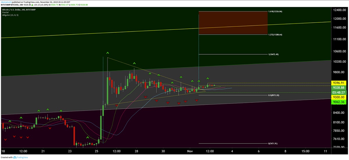 По мнению одного из лидирующих аналитиков, тот факт, что биткоин смог удержаться в области $9K - это признак того, что актив готов вырасти до $11,300 и даже может в область максимума на $12,300. Джош Олжевиц, аналитик Brave New Coin, недавно заявил, что вокруг биткоина вновь формируется бычья основа, несмотря на затишье на прошлой неделе. Индикатор аллигатор, который использует 3 средние скользящие для определения трендов, начинает демонстрировать наращивание позиций биткоина, достигнув уровня сигнала долгий позиций.