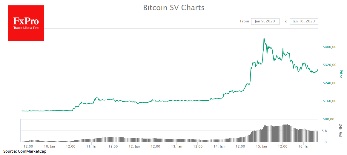 Среди альткоинов наибольшее снижение показывает Bitcoin SV (-21%), после почти четырехкратного роста цены менее чем за неделю. Другие монеты теряют меньше, но и росли они скромней.