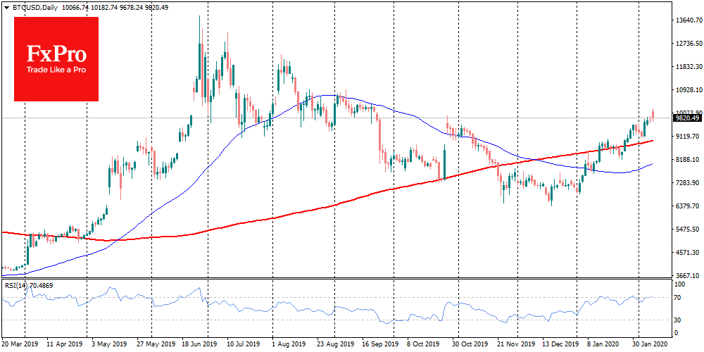 Главной крипто-темой начала новой рабочей недели, безусловно, стало преодоление биткоином цены в $10,000. Это тут же оживило дискуссии на тему дальнейших перспектив крипторынка: рост продолжится, или начнется фиксация прибыли?