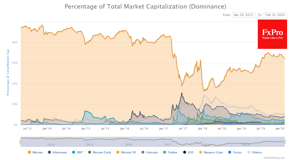Одновременно падал и индекс доминирования Bitcoin. В начале недели он снизился до 63.7%. Это тоже весьма позитивный сигнал для рынка в целом, поскольку означает, что инвесторы активней скупают альткоины, поверив в перспективы этого рынка. Даже с учетом начала коррекции, суммарная крипто-капитализация за неделю показывает рост на $20 млрд. Ситуация может измениться в течение дня в худшую сторону, однако пока что рынок не паникует.