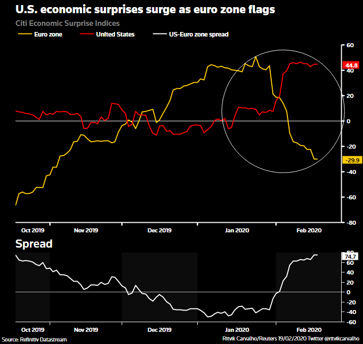 Во вторник ZEW опубликовали ежемесячное исследование, которое показало более существенное ухудшение настроений инвесторов, нежели ожидалось в феврале. “В течение некоторого времени я говорил о рисках дальнейшего падения пары евро/доллар с фундаментальной точки зрения, которая базируется на расширении различий между ожидаемым ростом в сравнении между двумя этими регионами. Существует также и технический аргумент в пользу снижения евро: единая валюта приближается к важному долгосрочному уровню поддержки”, - заявил Маршалл Гиттлер, глава аналитического отдела BDSwiss.