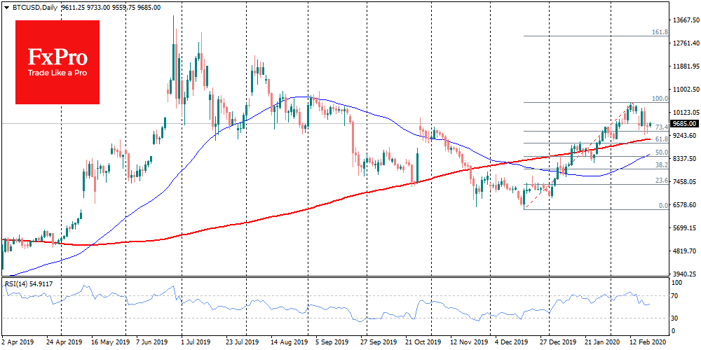Bitcoin в очередной раз не смог закрепиться выше $10K. Тем не менее, и медведи остановились на $9,600, оказавшись не в силах продавить эталонную криптовалюту ниже. За сутки рост Биткоина приближается к проценту и в начале торгов монета торгуется ближе $9,700. Индекс доминирования, индекс жадности и страха, индекс относительной силы - все они замерли в ожидании новых рыночных триггеров. Никто не хочет оказаться ни в рядах рано продавших, ни слишком дорого купивших.