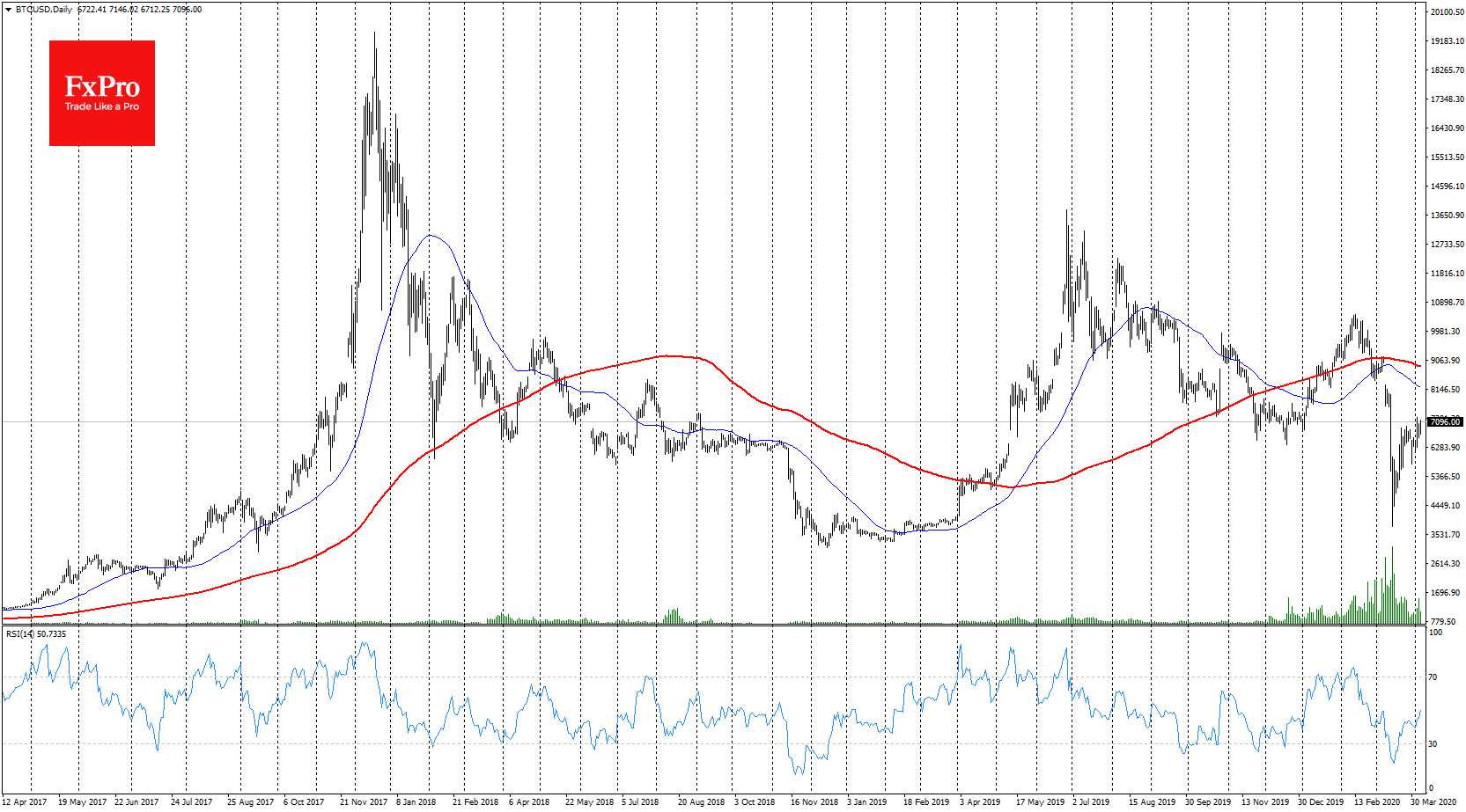 Биткоин, а следом за ним и весь крипторынок, начинают неделю на позитивной ноте. За последние 24 часа эталонная криптовалюта прибавляет почти 4%, сумев превысить порог в $7000. Вместе с ростом цены заметно и увеличение торговых объемов, что дополнительно укрепляет импульс на повышение курса.