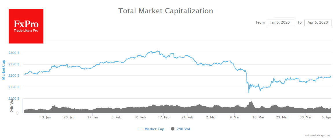 Рынок альткоинов не отстает от главной криптовалюты. Ethereum (ETH) прибавляет за сутки более 4% и торгуется около $150. За неделю он вырос более чем на 14%. XRP +8%, Bitcoin Cash (BCH) +12%, Litecoin (LTC) +9%, EOS +12%, Binance Coin (BNB) +17%, Monero (XMR) +20%, Stellar (XLM) +16%, DASH +8%, NEO +13%, ZCash (ZEC) +20%, WAVES +17%.