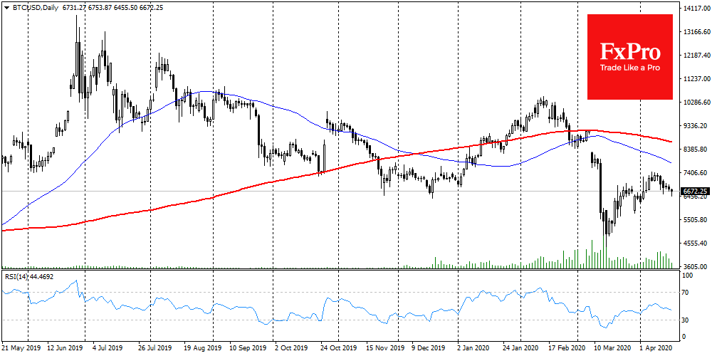 Краткосрочно круглый уровень $7000 привлекает внимание трейдеров. Среднесрочная техническая картина чуть больше сдвинута в пользу медведей. На дневных графиках BTCUSD остается заметно ниже 50 и 200-дневных средних (это признак понижательной тенденции) при том, что RSI вышел из зоны перепроданности, не давая сигналов к покупке.