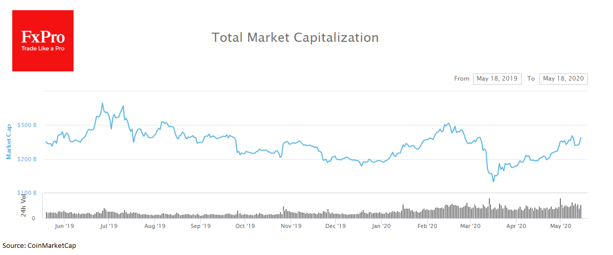 Если брать значения для криптовалют за неделю, то здесь картина весьма оптимистичная. Биткоин за последние 7 дней вырос на 13%. Ведущий альткоин Ethereum (ETH) за неделю прибавил 14%. Суммарная капитализация криптовалют за 7 дней выросла на 13% до $268 млрд. Преодоление $300 млрд также является весьма важным этапом для крипторынка, поскольку выше него монеты сталкиваются с серьезным давлением продавцов.
