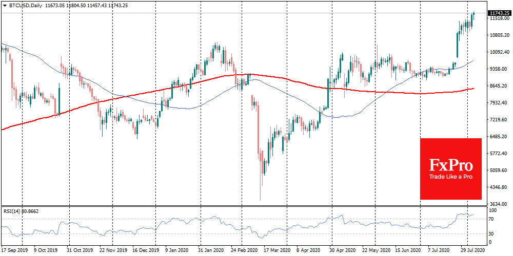 Биткоин удержался выше $11000 и продолжает рост. Кроме того, поддерживается импульс и по остальным криптовалютам. За последние сутки монета выросла на 3% и меняет руки на $11,750. Приближается конец рабочей недели: в данный момент недельный рост эталонной криптовалюты составляет почти 7%. Закрытие недели в непосредственной близости или выше $12000 стало бы лучшим свидетельством благоприятных перспектив для крипторынка.