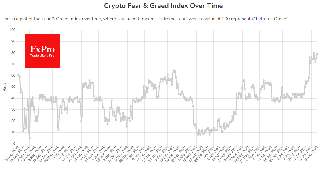 Индекс жадности и страха находится в области “экстремальная жадность”: это как минимум подталкивает к проявлению серьезной осторожности. С тех пор как на крипторынке появились институциональные деньги, цифровые валюты не могут расти в формате “непоколебимой веры” в перспективы криптовалют. Появилась более ощутимая зависимость от технических индикаторов, более явная связь с происходящим на традиционном рынке. Тем не менее, это и есть взросление активов, которое привлечет со временем больше крупного капитала.